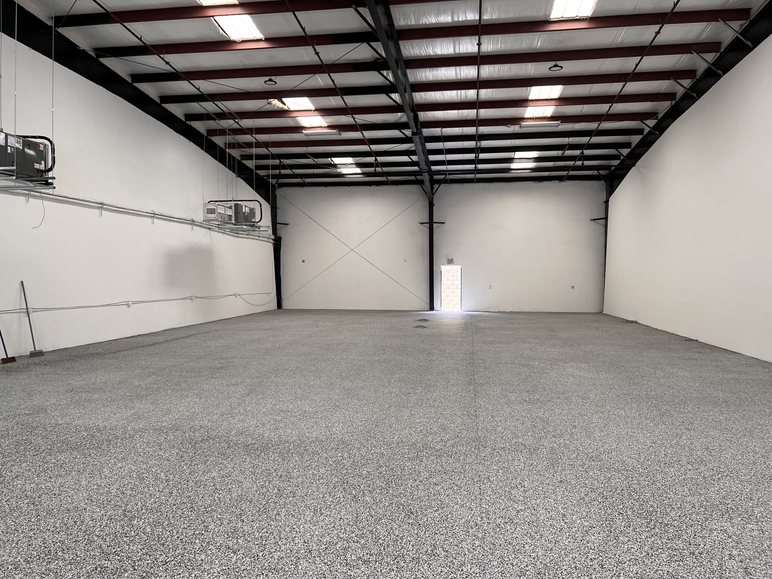 The final step occurs the next day, when we apply our high-performance urethane. This solvent-based product bonds seamlessly with the epoxy, providing a weather-resistant shield that extends the life of your flooring.