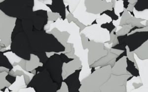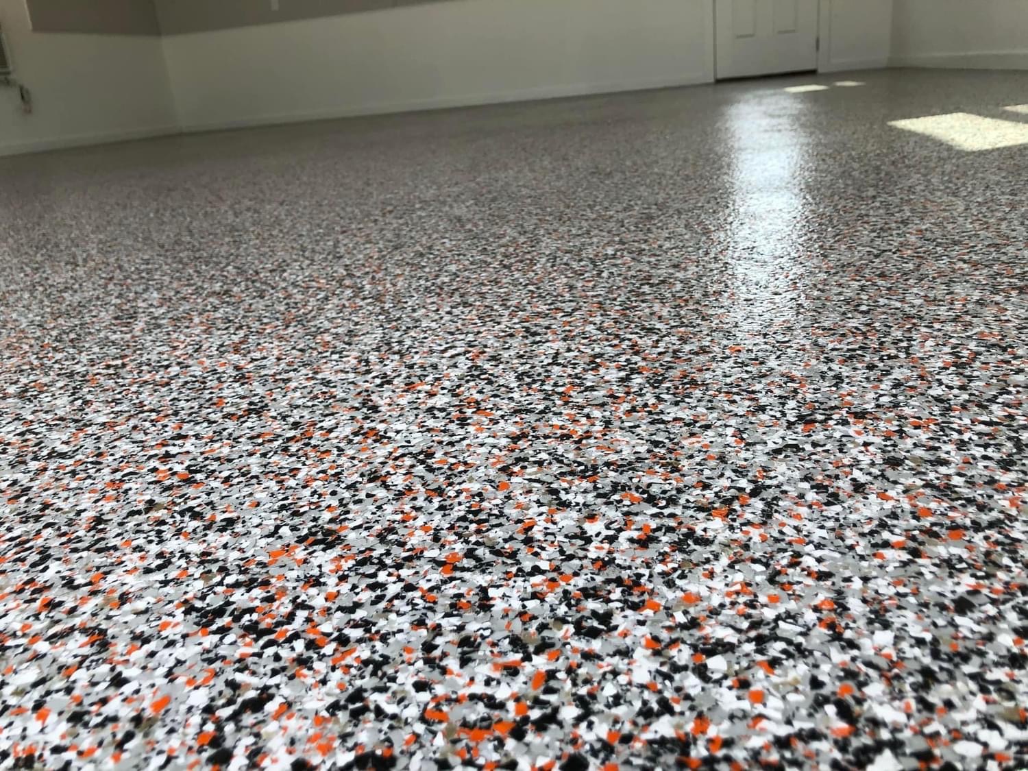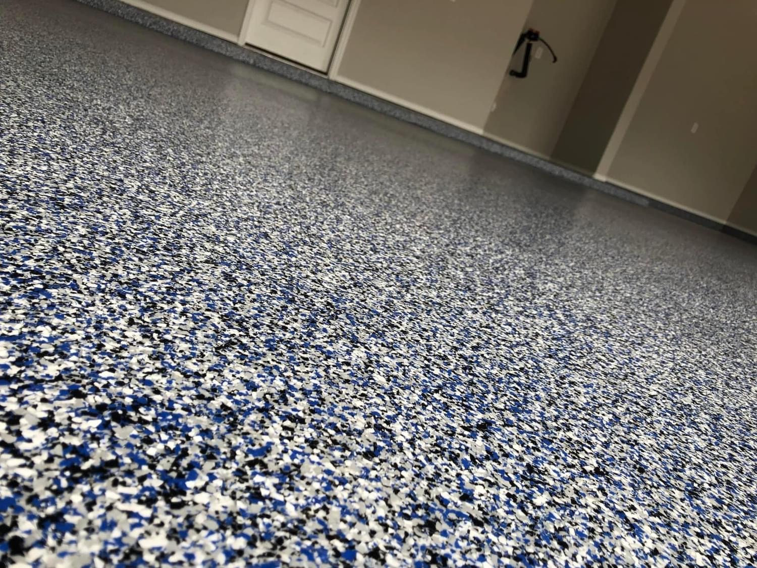 This style is very popular in garages and shops. When done with intent, flake color patterns can match the existing style of any space.